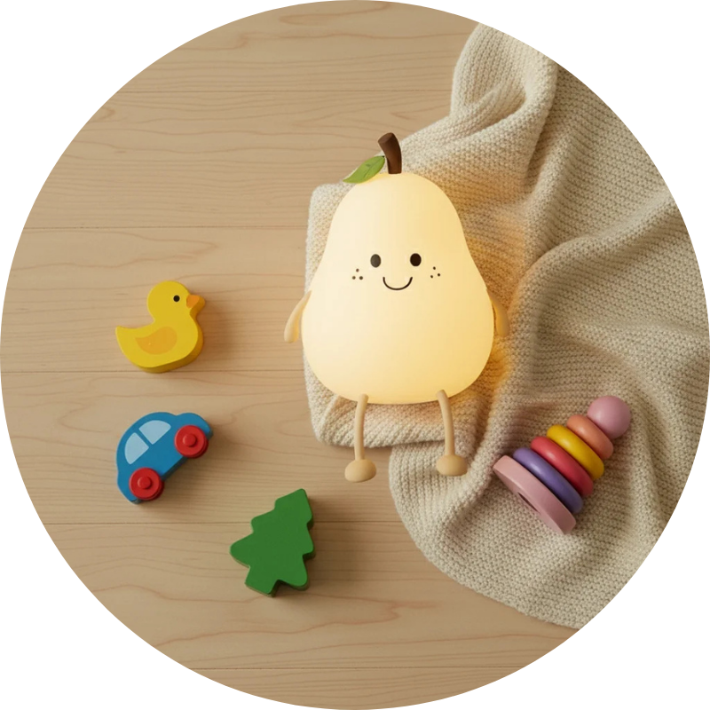 Avec son sourire et ses petites pattes, cette veilleuse poire est bien plus qu'une lampe : c'est un ami qui veillera sur les nuits de votre enfant.